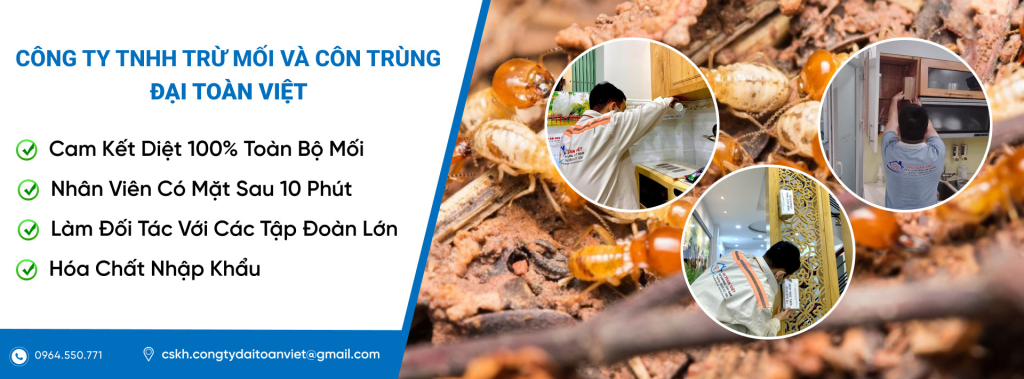 Công ty diệt mối và côn trùng Đại Toàn Việt là một trong những chuyên gia hàng đầu trong lĩnh vực côn trùng và sinh vật gây hại. Với hơn 10 năm thành lập, trải qua quá trình hoạt động lâu dài cùng kinh nghiệm phong phú, chúng tôi cung cấp đến cho khách hàng những biện pháp “DIỆT MỐI HÓA SINH” an toàn không độc hại đến người già, trẻ nhỏ và phụ nữ đang mang thai.